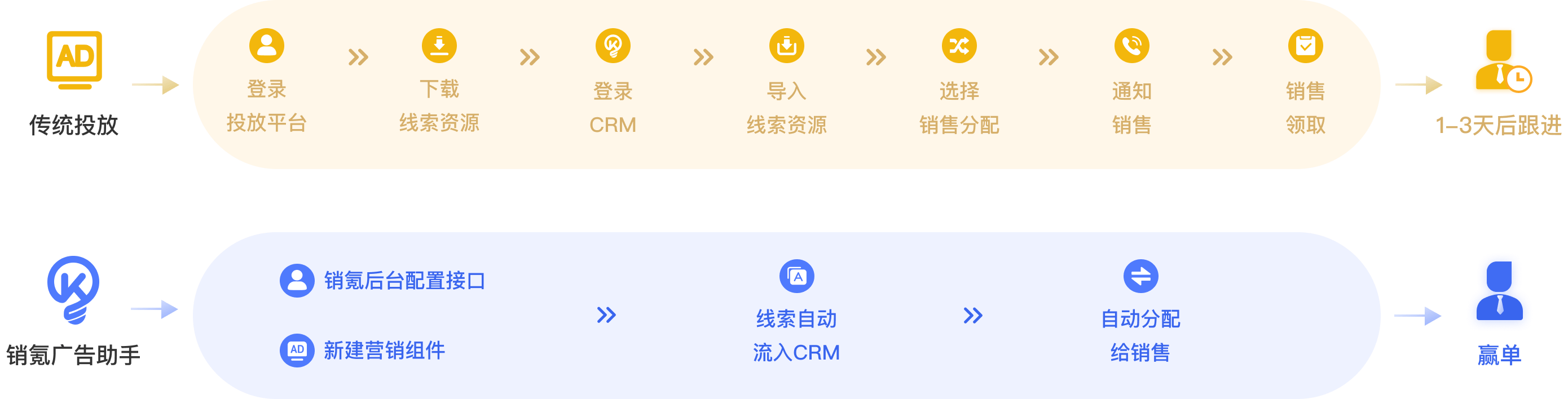 主流广告渠道:打通百度、腾讯、巨量引擎、美团点评、磁力引擎等主流渠道,广告线索自动归集,统一流转至销氪CRM跟进管理