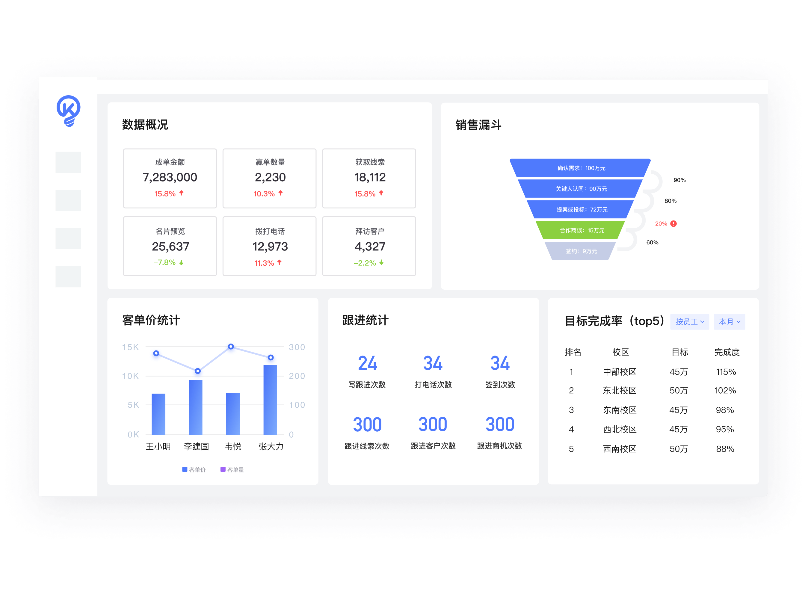 销售人效统计: 销售个人与团队客单价实时统计更新,帮助管理者分析团队人效,洞察关键指标,指提升导经营效益