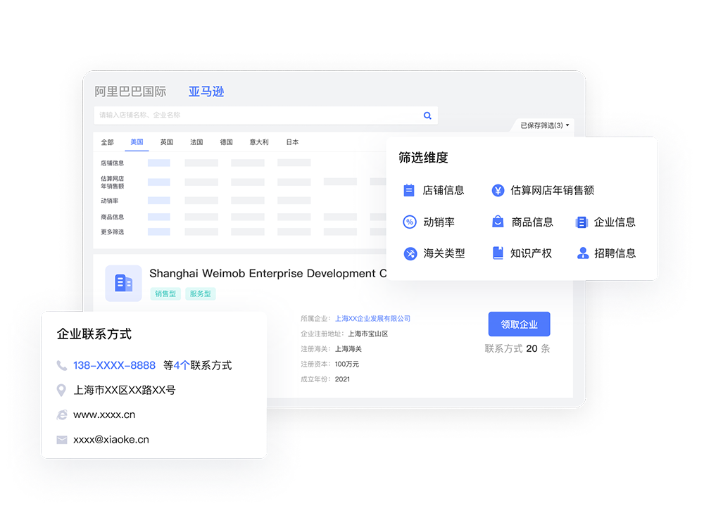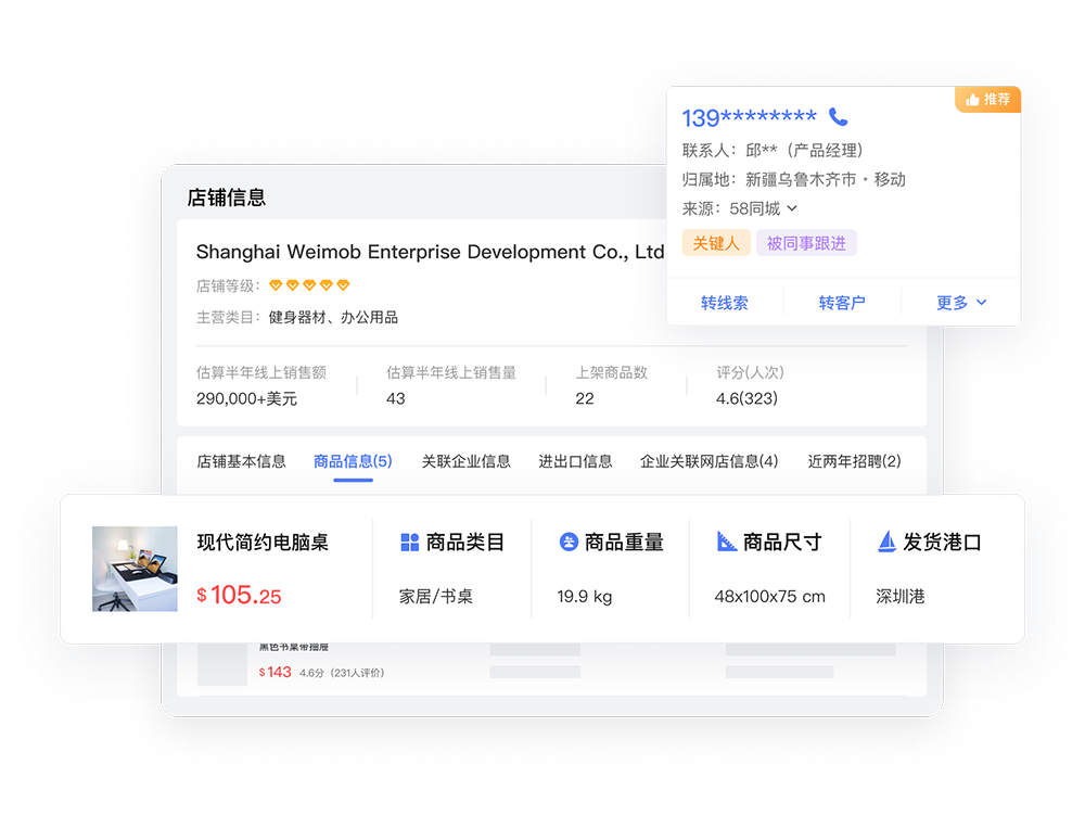 一页看全店铺信息: 店铺基本信息、商品信息、关联企业信息、进出口信息等集中聚合展示,一页就能了解店铺及企业画像