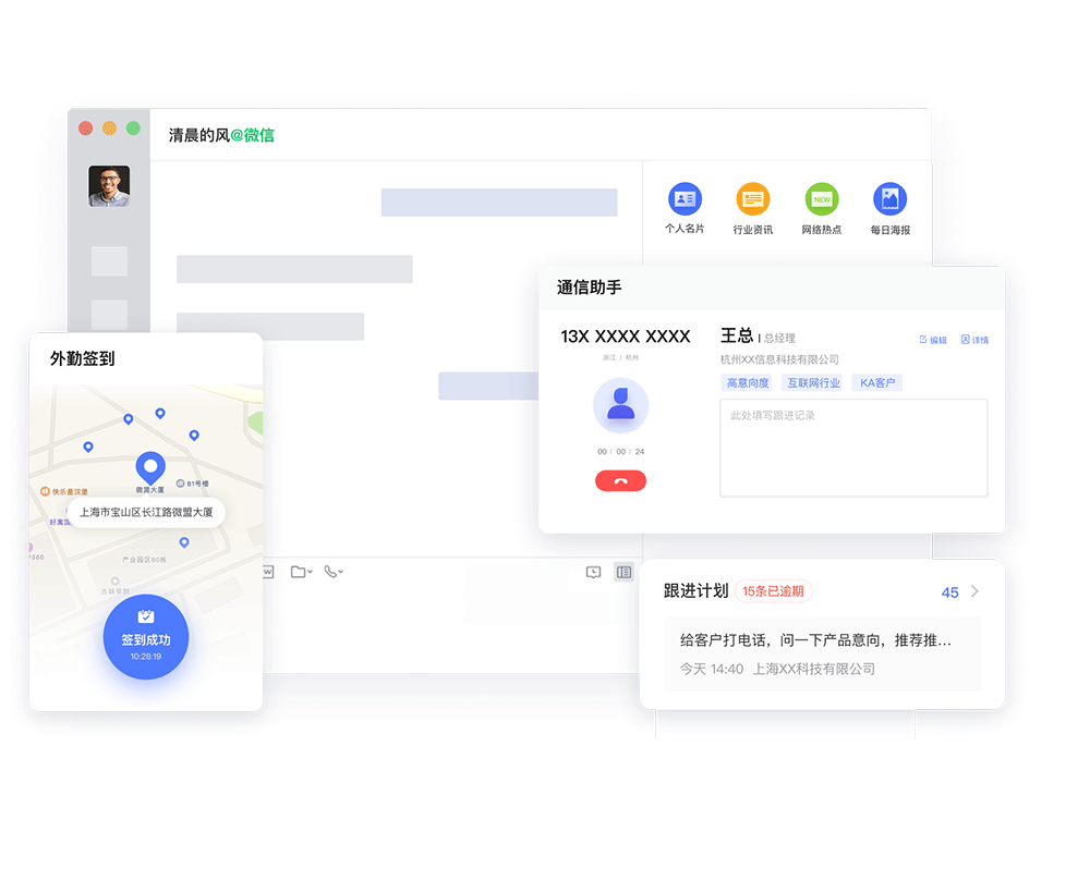 智能通信助手,快速触达意向客户 : 通信助手边打电话边做记录,深度挖掘客户意向。快捷制定拜访计划,智能提醒不遗漏