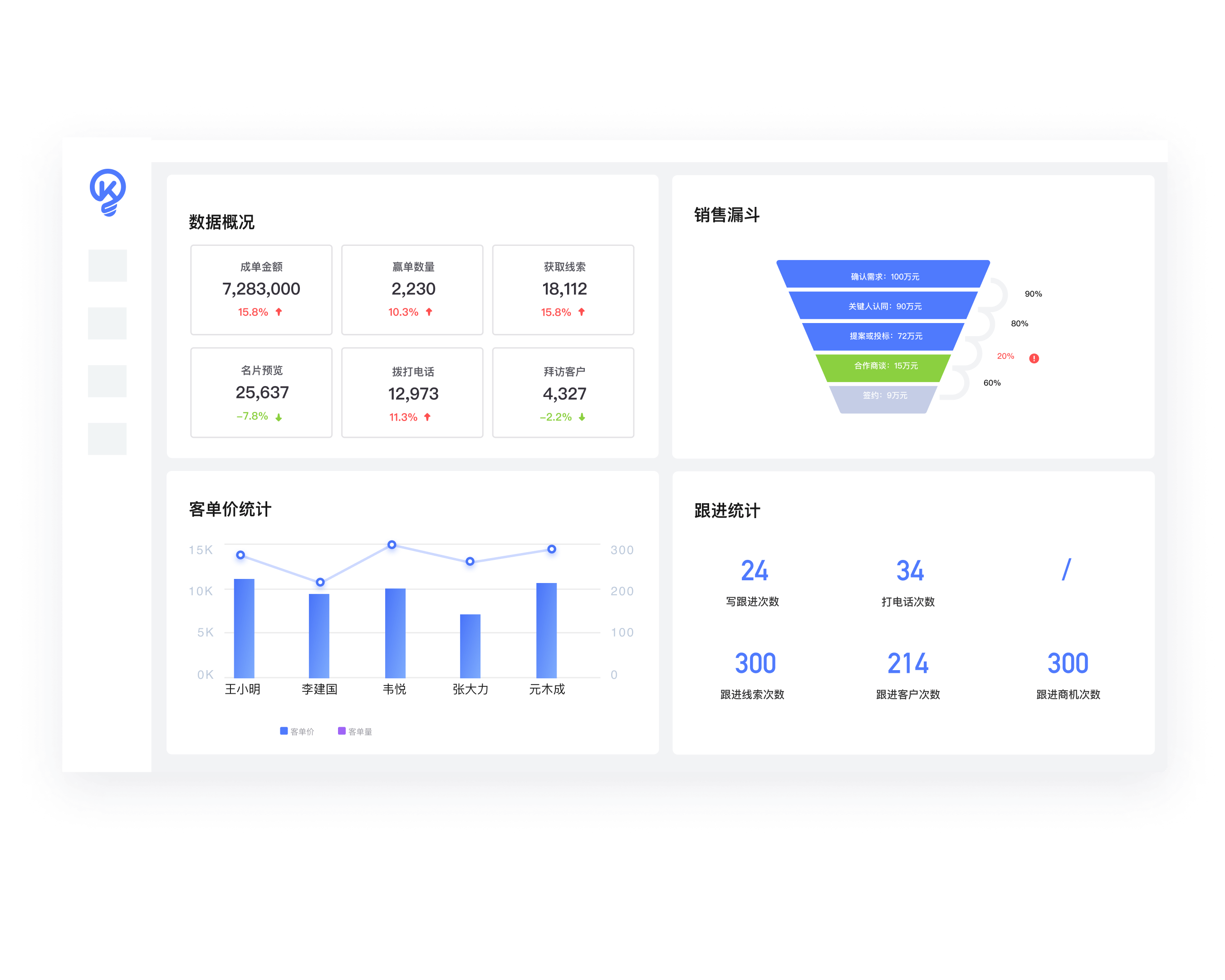 销售业绩分析 : 统计分析关键指标数据,帮助管理者掌握销售情况,及时调整优化销售策略